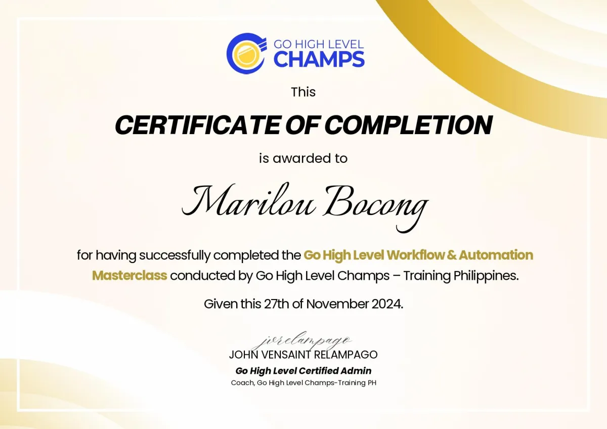 She is committed to mastering the platform, applying her skills to build her portfolio. On track to becoming a GHL expert, her future success will make me proud.